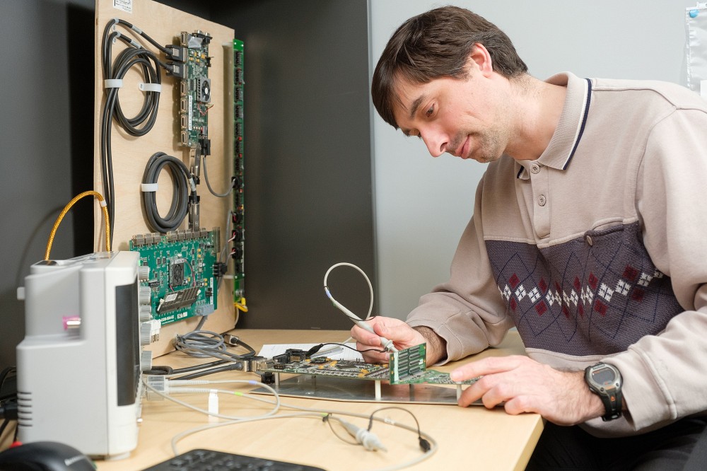 Mon mandat principal consiste à créer une instrumentation capable de mesurer le temps de vol de la radiation utilisée en TEP, ce qui augmente la sensibilité de l’appareil. Au sein de l’équipe du 3IT.Micro, je développe des modèles d’analyse et des systèmes d’acquisition ultrarapides adaptés au xénon liquide, un médium rarement utilisé en la matière jusqu’ici. Plus difficile à utiliser que les cristaux commerciaux, cet élément doit être vérifié expérimentalement, afin de s’assurer qu’il offre les performances souhaitées. Il s'agit ensuite de construire un prototype de détecteur.