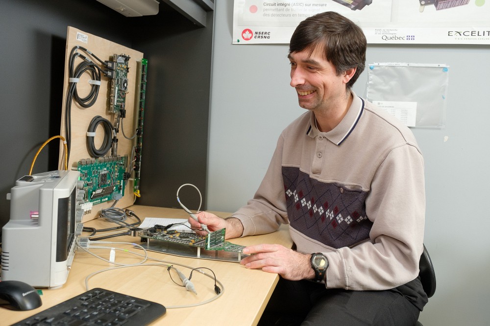 J’ai complété mon baccalauréat, ma maîtrise et mon doctorat en génie électrique à l’Université de Sherbrooke. Pendant quatre ans, j’ai œuvré à titre de professionnel de recherche. En 2019, je suis devenu professeur. Ma spécialité concerne deux champs entrelacés : d’une part, il y a la conception de circuits numériques et du traitement de données en temps réel, et d’autre part, la recherche en imagerie médicale.