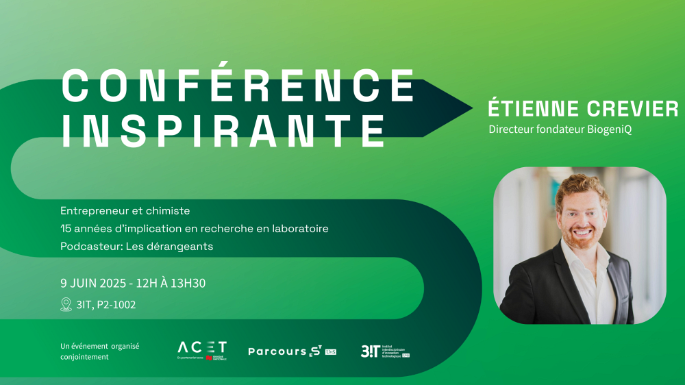 Viens écouter, poser tes questions et en apprendre plus sur l'écosystème de l'entrepreneuriat scientifique et technologique de l'Université de Sherbrooke.
