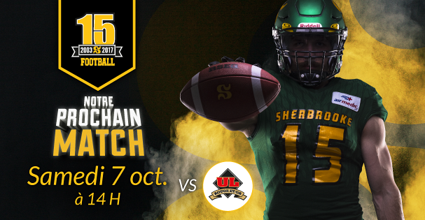 L'organisation du Vert & Or de l'Université de Sherbrooke vous invite à participer en grand nombre au troisième match à domicile de l'équipe de football, qui célèbrera sa 15e saison cette année.