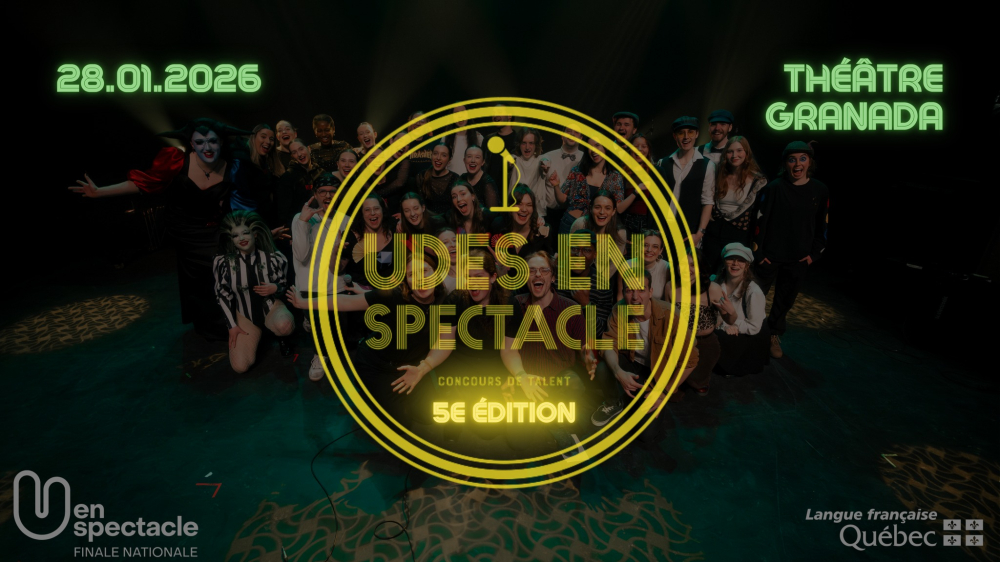 La cinquième édition de la finale d’UdeS en spectacle est de retour le mercredi 28 janvier prochain! À la suite d’auditions ayant eu lieu préalablement, le regroupement à l’honneur de vous présenter les meilleurs talents de l’UdeS provenant de toutes les facultés confondues.