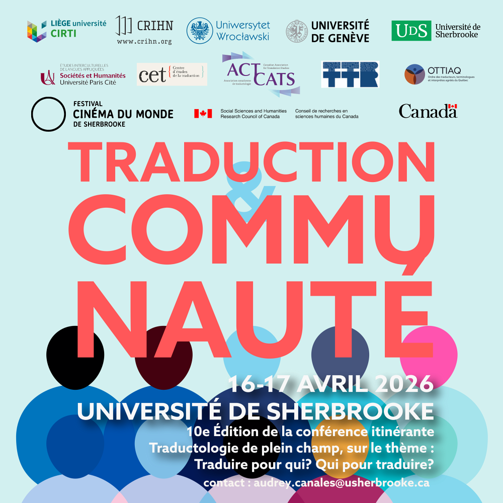 Rejoignez-nous pour deux journées de réflexion sur le rôle de la traduction dans nos communautés. Cet événement international, volet sherbrookois de la 10e édition de la conférence itinérante Traductologie de plein champ, réunira des spécialistes issus des milieux scientifique et professionnel, des membres de la communauté étudiante et du grand public autour de questions clés :