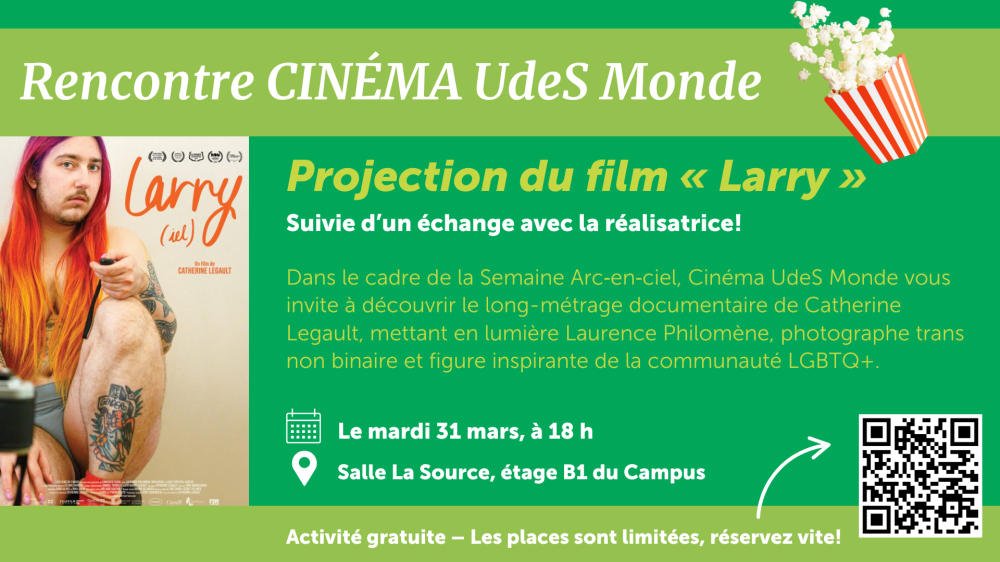 Dans le cadre de la Semaine Arc-en-ciel, Cinéma UdeS Monde a le plaisir de vous inviter à découvrir Larry, un long-métrage documentaire de la réalisatrice Catherine Legault.
