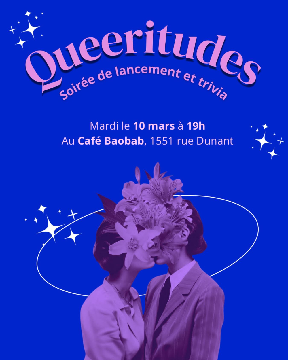 Nourriture et boissons seront disponibles sur place. Des exemplaires de « Queeritudes » seront également en vente, ainsi que d’anciens numéros à petit prix.
