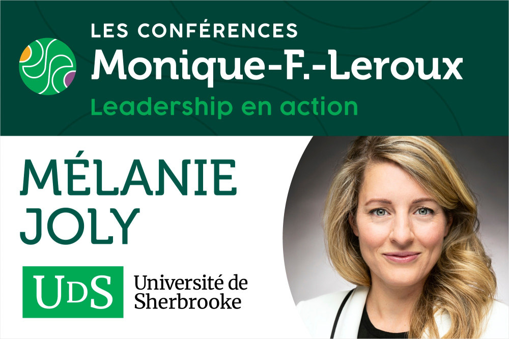La série Conférences Monique-F.-Leroux - Leadership en action a le plaisir de recevoir l’honorable Mélanie Joly, ministre de l’Industrie, également ministre responsable de Développement économique Canada pour les régions du Québec et députée d’Ahuntsic-Cartierville.