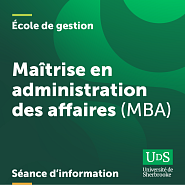 Vous souhaitez obtenir plus d’information sur notre programme de maîtrise en administration des affaires (MBA)? Inscrivez-vous pour assister à la séance d'information en ligne.