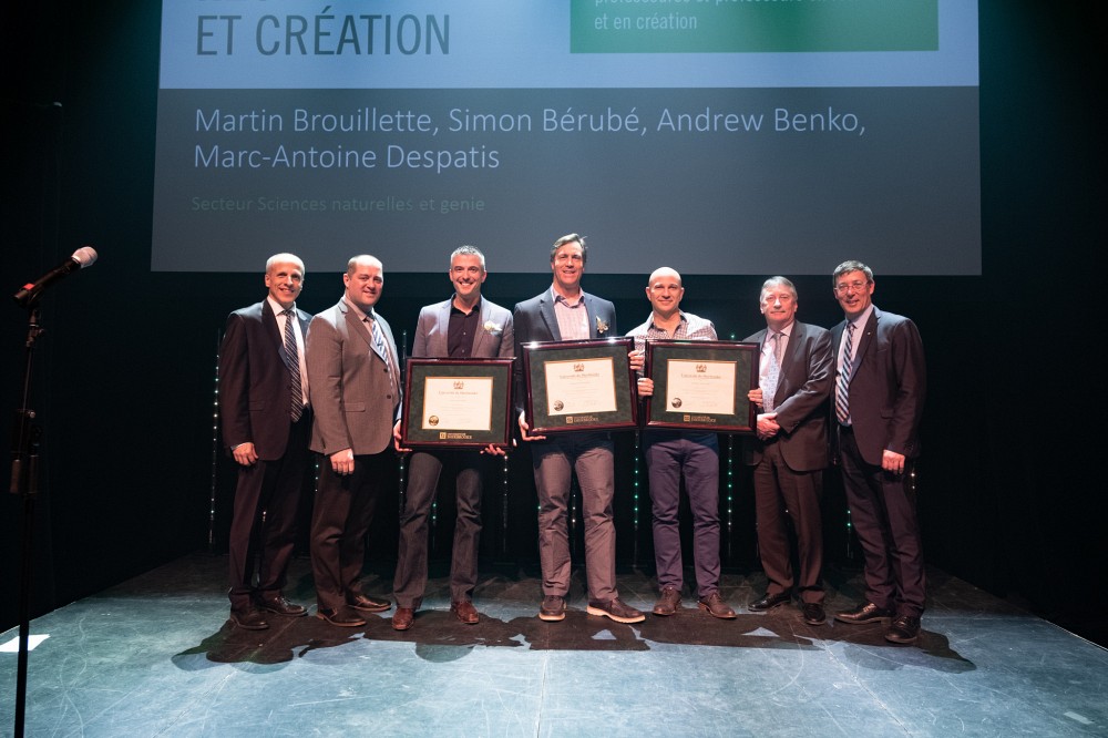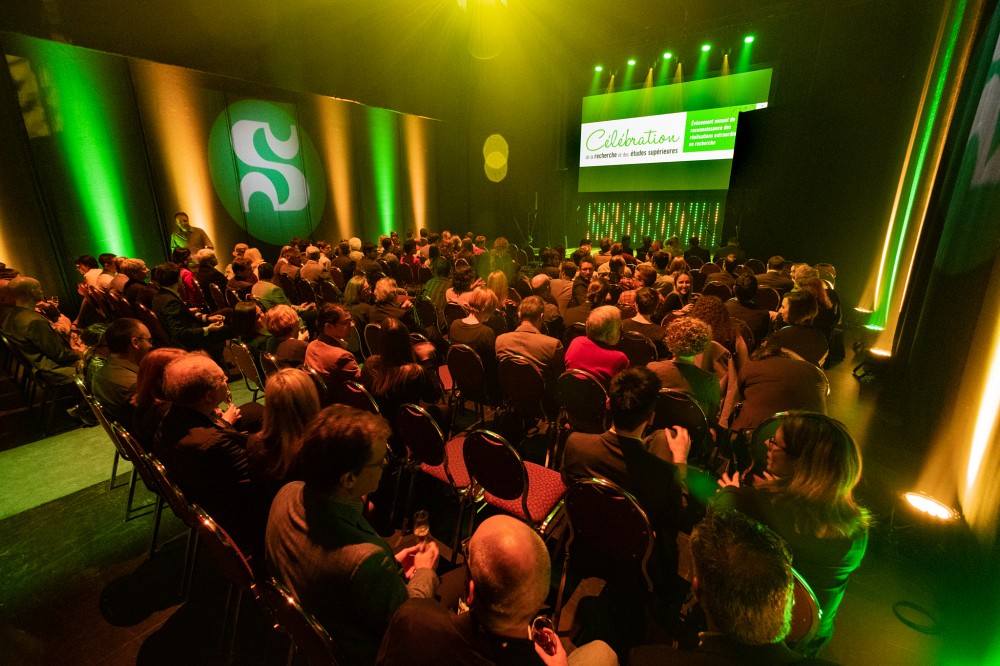 Animée par Yannick Bergeron, vulgarisateur scientifique réputé et enseignant de chimie au secondaire, la soirée du 1er mai visait à remettre des prix dans trois secteurs, soit Médecine et sciences de la santé, Sciences naturelles et génie et Sciences humaines et sociales. L’événement a permis de saluer le travail exceptionnel de 64 récipiendaires, provenant de l’ensemble de la communauté de la recherche à l’UdeS : étudiantes et étudiants, stagiaires postdoctoraux, professionnelles et professionnels de recherche ainsi que professeures et professeurs.