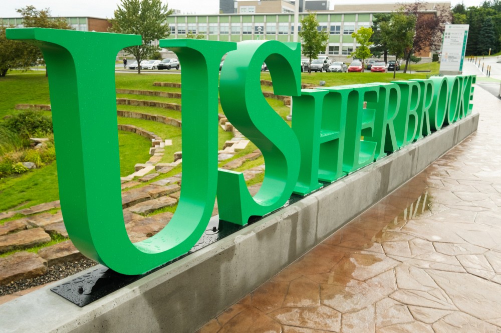 Difficile de ne pas remarquer ces jours-ci une toute nouvelle installation dans le paysage du Campus principal : un immense USherbrooke, tout vert et bien implanté au cœur même de la vie du campus, devant l'agora.