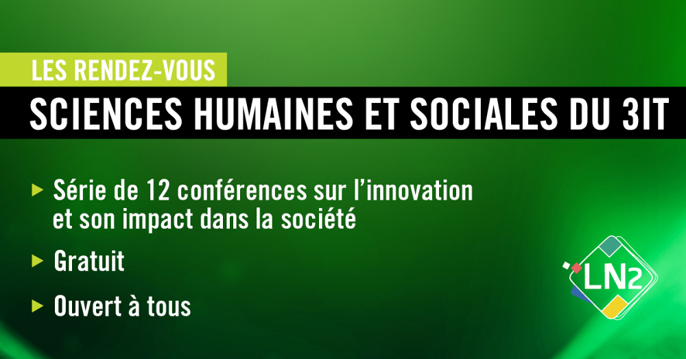 Tout au long de l’année 2021, « Les rendez-vous Sciences humaines et sociales (SHS) » permettront aux membres de l’Institut interdisciplinaire d’innovation technologique (3IT) et à toute la communauté universitaire d’assister à une conférence par mois portant sur l’innovation et son impact dans la société. Le but? Ouvrir la communication entre les sciences humaines et le génie et faire connaître davantage l’expertise du 3IT en sciences humaines et sociales.