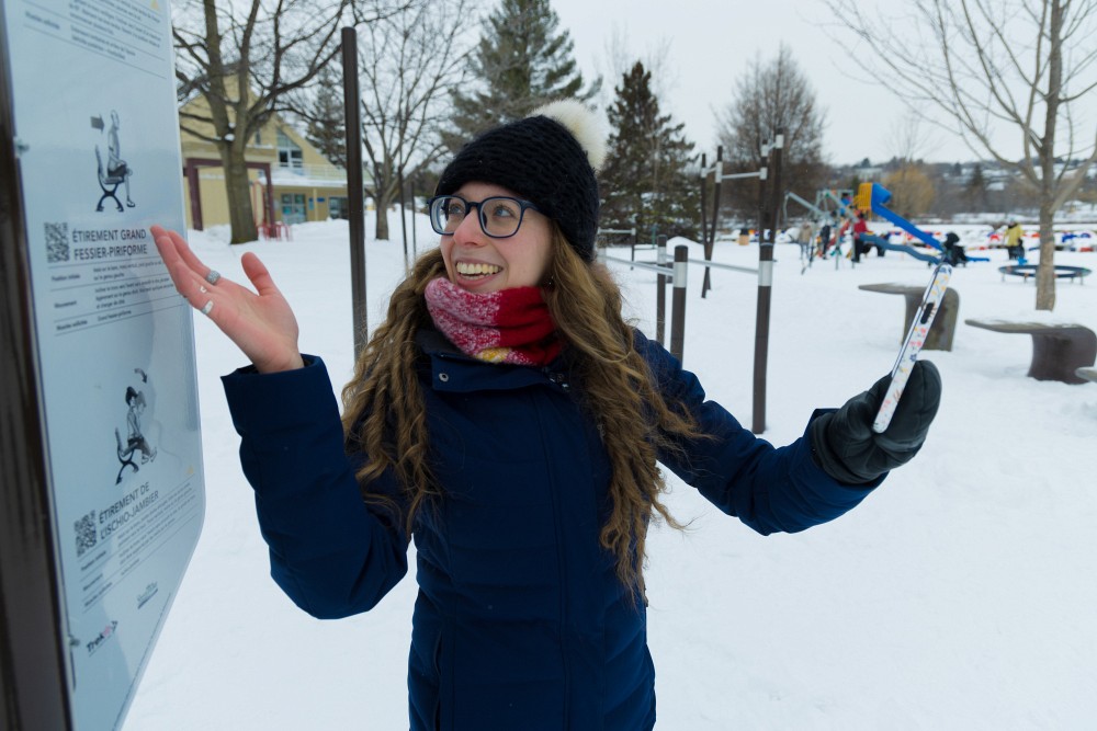 Dans le cadre d’un cours sur l’adaptation de l’environnement bâti du programme d’ergothérapie, la professeure Manon Guay a demandé aux étudiantes et étudiants d’explorer les parcs de la ville de Sherbrooke dans le but de reconnaître des environnements pouvant entraver ou faciliter l’accessibilité universelle pour la population. Dans de courtes vidéos, chaque personne devait se mettre en scène afin de vulgariser comment un élément de l’environnement bâti pouvait être une barrière ou un facilitateur à l’inclusion des personnes vivant avec des difficultés motrices ou cognitives.