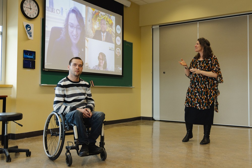 Les étudiantes et étudiants ont par la suite présenté leurs vidéos non seulement devant leurs collègues et professeure, mais aussi à la mairesse de Sherbrooke ainsi qu’à deux conseillers municipaux soucieux d’améliorer les aménagements des parcs de la ville. S’en est suivi une période de questions et d’échanges sur les intentions du conseil municipal en matière d’accessibilité universelle. La mairesse, qui dit rêver de travailler avec des spécialistes afin de concevoir un parc parfaitement accessible, a encouragé la communauté étudiante à contacter les élus afin de mettre en place d’autres activités de sensibilisation qui s’inscrivent dans le service à la communauté.