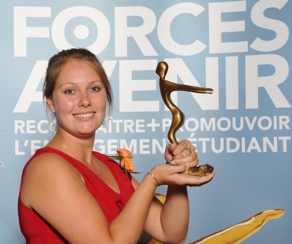 Originaire de Sherbrooke, Farah Lizotte a remporté le titre d’entraîneuse de l’année du RSEQ Cantons-de-l’Est en 2011-2012 et le prix François-Lamy de la Faculté de médecine et des sciences de la santé en avril dernier. Maintenant étudiante à la maîtrise en endocrinologie, Farah Lizotte a su démontrer que même si seuls, nous allons plus vite, ensemble, nous allons toujours plus loin. Elle a également mis la main sur une bourse de 15 000 $.