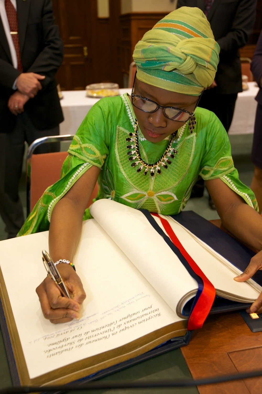 Près d’une centaine d’étudiantes et d’étudiants provenant de l’extérieur du Canada ont participé à l'événement, durant lequel chacun d’entre eux a été invité à signer le Livre d’or de la Ville de Sherbrooke, un acte symbolique concrétisant leur apport à la vie universitaire et citoyenne de Sherbrooke. La cohorte 2014 des diplômés et étudiants en programme d’échange provient de plus de 100 pays : de l’Albanie à la Tunisie en passant par la Chine, Haïti et le Sénégal. Près du tiers d’entre eux proviennent de la France.