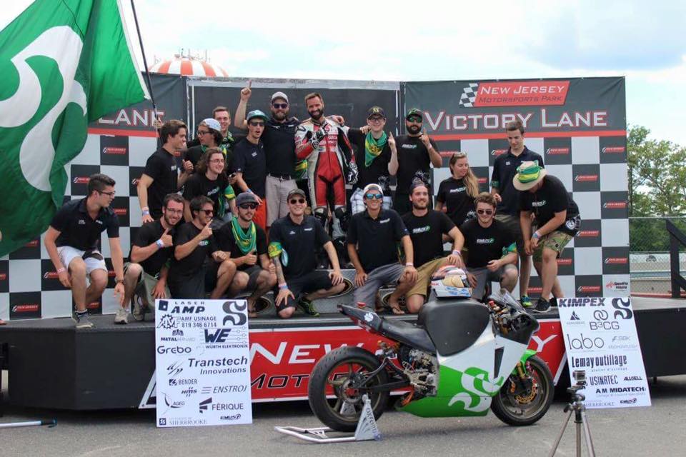 L’équipe du projet EMUS (Electric Motorcycle de l’Université de Sherbrooke) s’est démarquée à la compétition eMotoRacing Varsity Challenge en remportant la catégorie universitaire, les 9 et 10 juillet derniers au New Jersey.