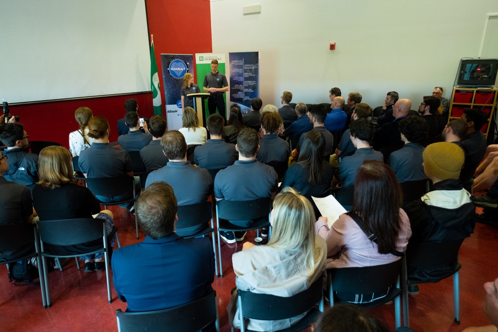 L’équipe QMSat produira le premier satellite de l'UdeS à atteindre l'espace. « Il représentera un des premiers transferts d'une technologie quantique d'avant-garde développée à l'Institut quantique de l’Université de Sherbrooke vers une application concrète, qui sera elle-même l’une des premières applications des technologies quantiques dans l'espace » explique avec enthousiasme le professeur Julien Sylvestre de la Faculté de génie, le coordonnateur du projet. Il ajoute d’emblée qu’une formation ciblée sera au cœur du projet. Plusieurs cohortes d’étudiants différentes, soit environ 125 étudiants, le réaliseront sur une période de trois ans dans le cadre des projets de conception majeurs de fin de baccalauréat, une spécificité des programmes en génie à Sherbrooke.