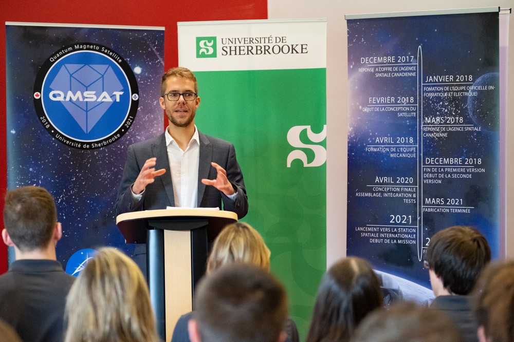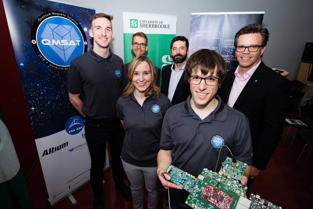 L’équipe QMSat, composée de futurs ingénieurs inscrits au baccalauréat en génie ainsi que d'étudiants d'autres facultés de l’Université de Sherbrooke a obtenu l’une des 15 subventions de plus de 200 000 dollars sur trois ans, accordées par l’Agence spatiale canadienne dans le cadre de l’Initiative canadienne CubeSats. Le projet QMSat vise à démontrer une nouvelle technologie de capteur permettant de mesurer des champs magnétiques dans l’espace pour améliorer la mesure de précision des tempêtes solaires sur les communications radio, les GPS et les réseaux électriques.
