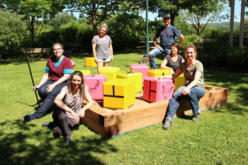 Shanny Coté, Marie-France Faguy, Vicky Morin-Coulombe, Nancy Roy, Marie-Eve Yergeau et Yvan Brunet, tous inscrits en arts visuels à l'Université de Sherbrooke, ont réalisé l'œuvre éphémère Pop O3 pour l'édition 2018 des Jardins réinventés de la Saint-François, qui se tiendra du 8 juillet au 13 septembre à la Maison des arts et de la culture de Brompton.