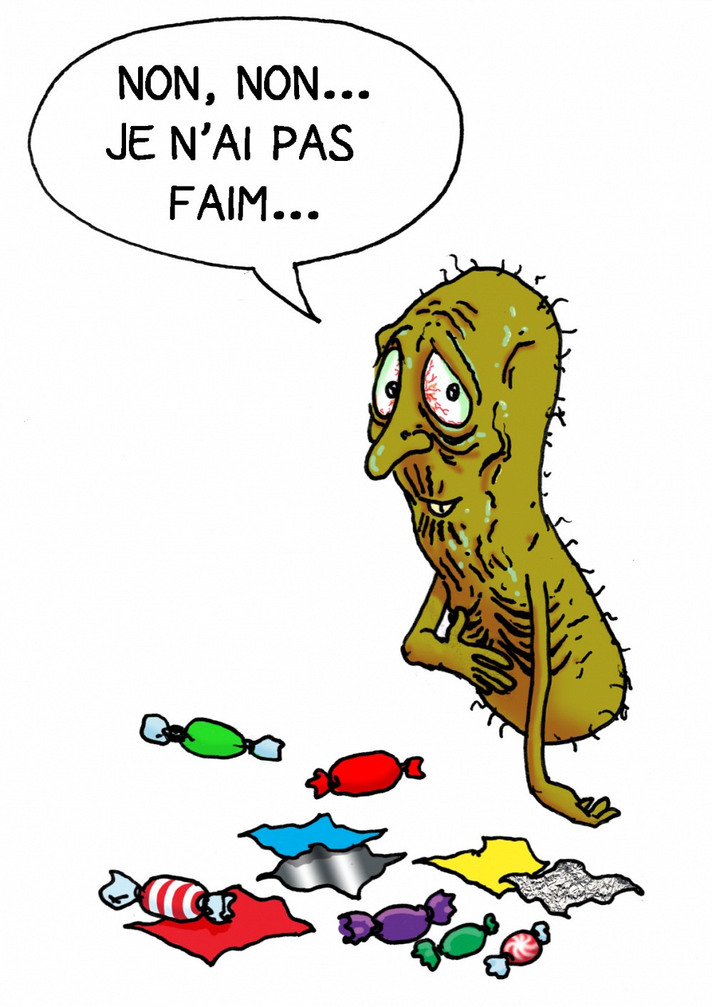 Les antibiotiques ciblant les riborégulateurs sont dérivés de nutriments essentiels aux bactéries, sans toutefois servir de nourriture à celles-ci. Parce que les riborégulateurs détectent la concentration des nutriments, il est possible de « tromper » les bactéries. Elles « croiront » alors à tort que leur besoin est comblé et se sentiront rassasiées. On peut comparer cette situation au fait de manger des bonbons juste avant l’heure du souper : on n’a plus faim, mais on n’est pas vraiment nourri! Récemment, l’équipe du professeur Daniel Lafontaine, à l’Université de Sherbrooke, a justement découvert qu’un riborégulateur peut seulement être trompé pendant une fenêtre de temps bien définie. En effet, si un antibiotique est actif au bon moment, il imposera la décision de ne pas manger alors que la bactérie en a besoin, ce qui aura des effets néfastes sur elle. De plus, les résultats obtenus suggèrent que beaucoup de riborégulateurs pourraient fonctionner de cette façon.