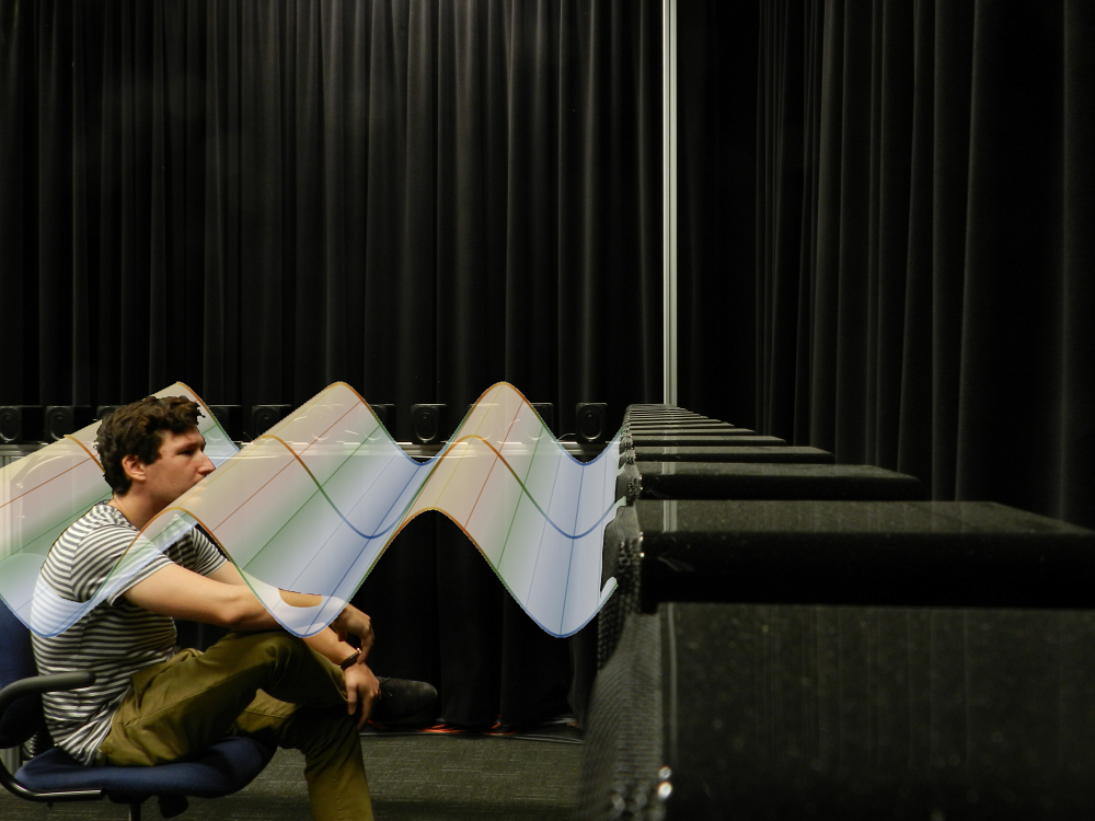 Le Groupe d’Acoustique de l’Université de Sherbrooke (GAUS) étudie la reproduction de champ sonore. À l’aide d’un réseau constitué de dizaines, voire de centaines de haut-parleurs, les chercheurs créent des holophones, sorte d’hologrammes auditifs. On simule auditivement ce à quoi pourrait ressembler un environnement sonore dans différentes conditions. Autrement dit, de la même manière que les logiciels de conception 3D nous permettent de visualiser des objets avant de les fabriquer, on peut « visualiser » de façon auditive l’impact acoustique d’objets de la vie courante – aussi bien des matériaux isolants que des vitres, du mobilier, etc. - sans les avoir physiquement avec soi.