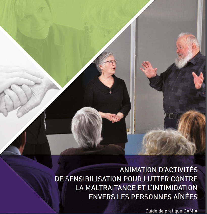 Le guide, disponible depuis la fin de l’année 2018, se compose de deux fascicules. Le premier vise à développer et à maximiser la pratique de sensibilisation des personnes administratrices et coordonnatrices des organismes communautaires en matière de lutte contre la maltraitance et l’intimidation envers les aînés. Le deuxième a pour objectif de préparer et de soutenir les personnes qui animent des activités de sensibilisation auprès des aînés dans les organismes communautaires.