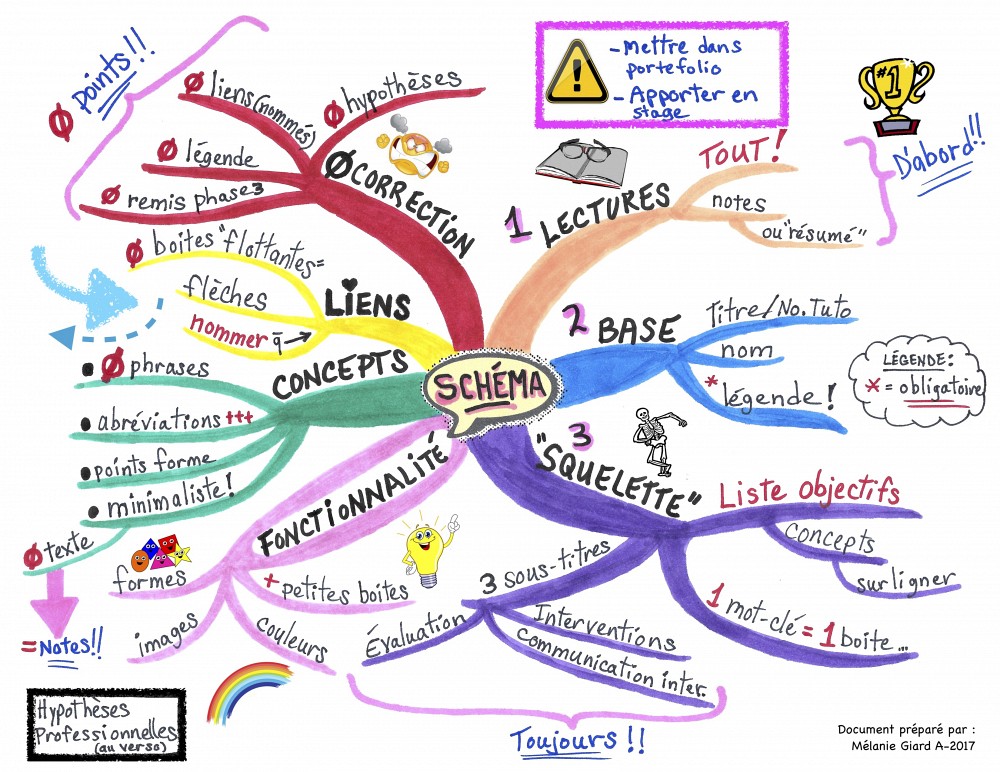 Pour la chercheuse, cette manière de présenter l’information représente un formidable outil de soutien à la réussite. Avec les cartes heuristiques, l’essentiel peut tenir sur une page, et cette synthèse permet de bien intégrer le propos, qui devient plus facile à mémoriser :