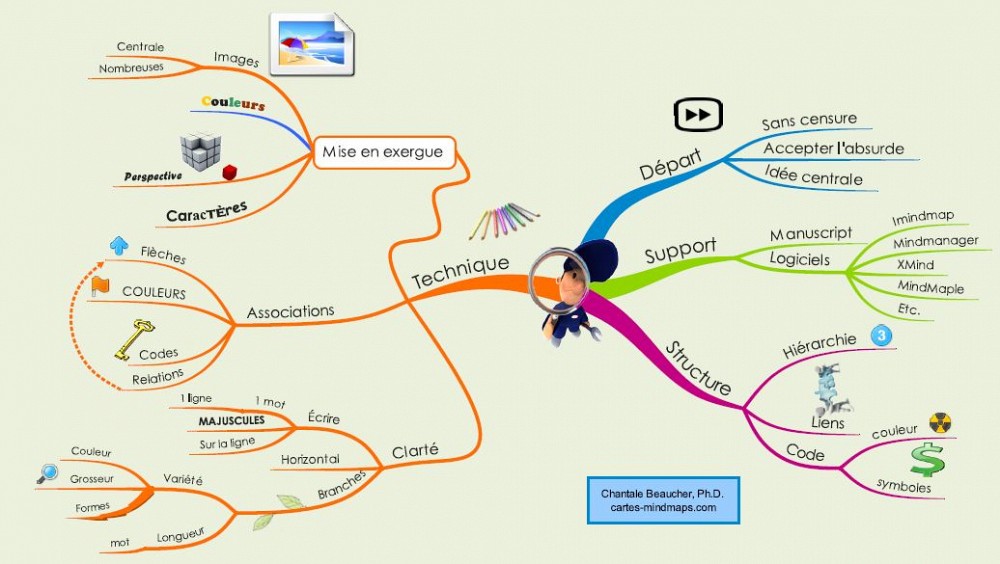 Ses recherches l’ont conduit à découvrir que de fonctionner par associations, de faire des liens entre les idées, d’ajouter des stimuli – de la couleur, du mouvement, des formes –, c’était susceptible d’aider à stimuler le cerveau et à organiser les idées.