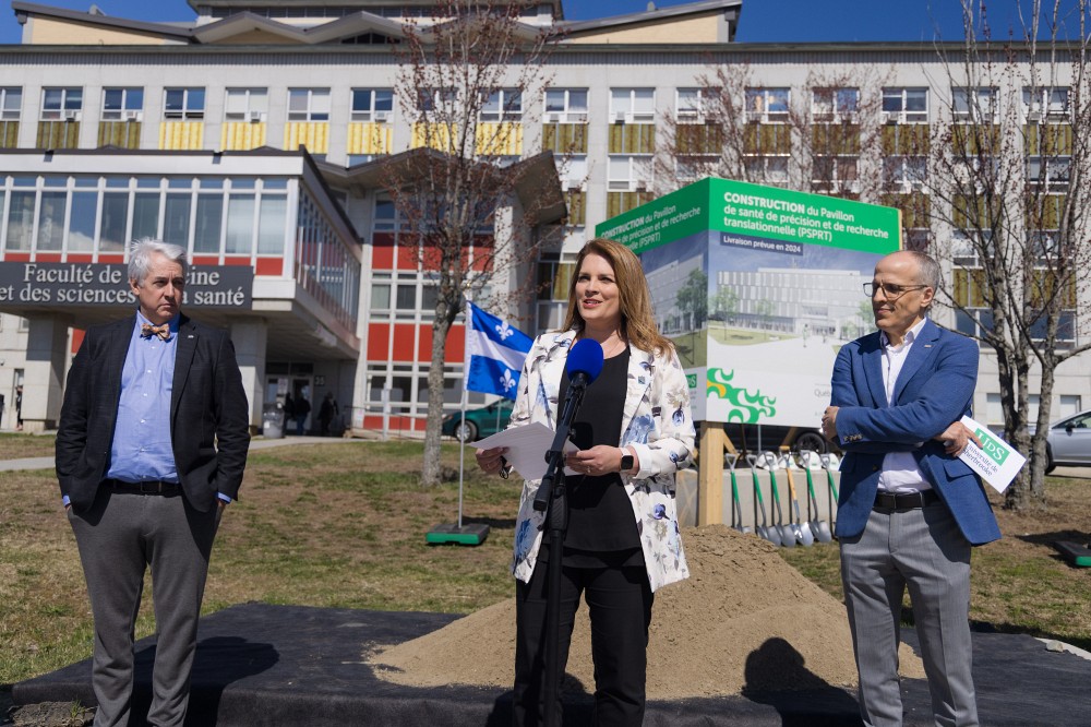 Nous lançons aujourd’hui les travaux de construction de ce pavillon pour lequel nous avons tant travaillé depuis plusieurs années avec la Faculté de médecine et des sciences de la santé. Ce pavillon permettra à l’Université de Sherbrooke de se démarquer en recherche, dans ses applications concrètes aux bénéfices des personnes, et de demeurer un chef de file en santé de précision au Québec. La vocation de ce nouveau bâtiment est de développer des approches personnalisées basées sur une recherche interdisciplinaire, dans la mise en place de soins et services visant le maintien en santé des personnes.