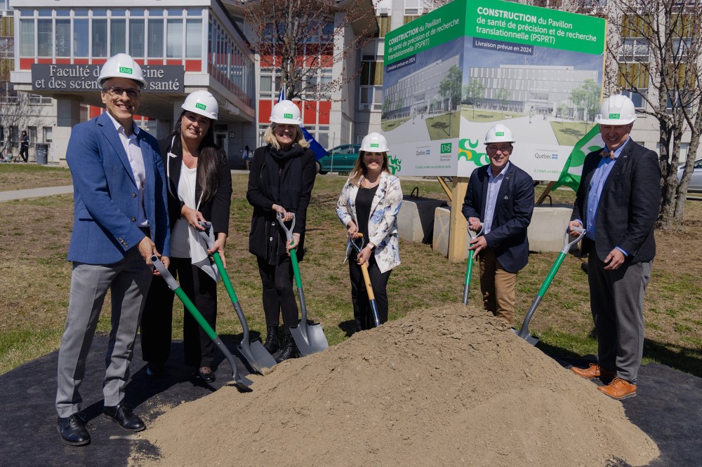 La première pelletée de terre a été soulevée le 6 mai pour marquer le début des travaux de construction du Pavillon de santé de précision et de recherche translationnelle (PSPRT). Situé au cœur du Campus de la santé de l’Université de Sherbrooke, le tout nouveau bâtiment, évalué à 65,5 M$, sera érigé au cours des deux prochaines années.