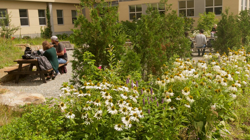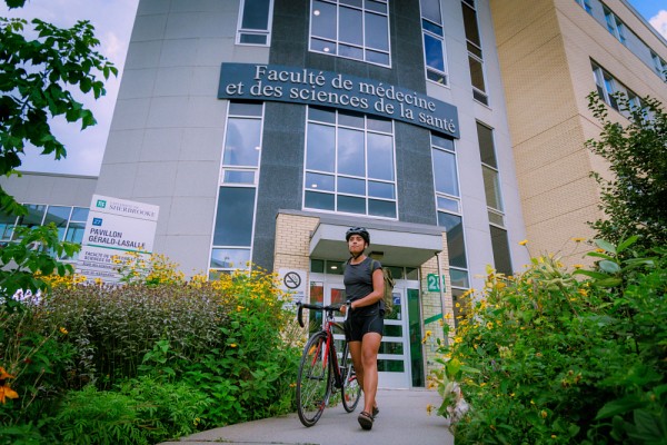 Le Campus de la santé est muni d'un jardin extérieur, idéal pour se réunir, étudier et même enseigner en nature. Avec son engagement volontaire dans la physiothérapie environnementale, l'UdeS fait maintenant partie d'une communauté d'enseignement professionnel ayant pour but de faciliter l'identification et la mise en œuvre d'idées novatrices et de solutions pour répondre aux questions environnementales urgentes.