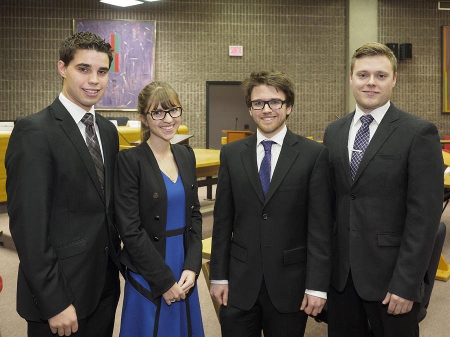 Lors du débat final, Charlotte a habilement tenté de convaincre le jury et l’auditoire des avantages du Projet de loi 3 de l’Assemblée nationale favorisant la santé financière et la pérennité des régimes de retraite à prestations déterminées du secteur municipal, alors que David a argumenté contre. Aux dires des juges, les débatteurs finalistes étaient particulièrement bien préparés et structurés. Le commentaire final du juge Martin a d’ailleurs été très éloquent : « Ça me rend très fier d’être un ancien de la Faculté. C’est impressionnant et encourageant de vous voir ».