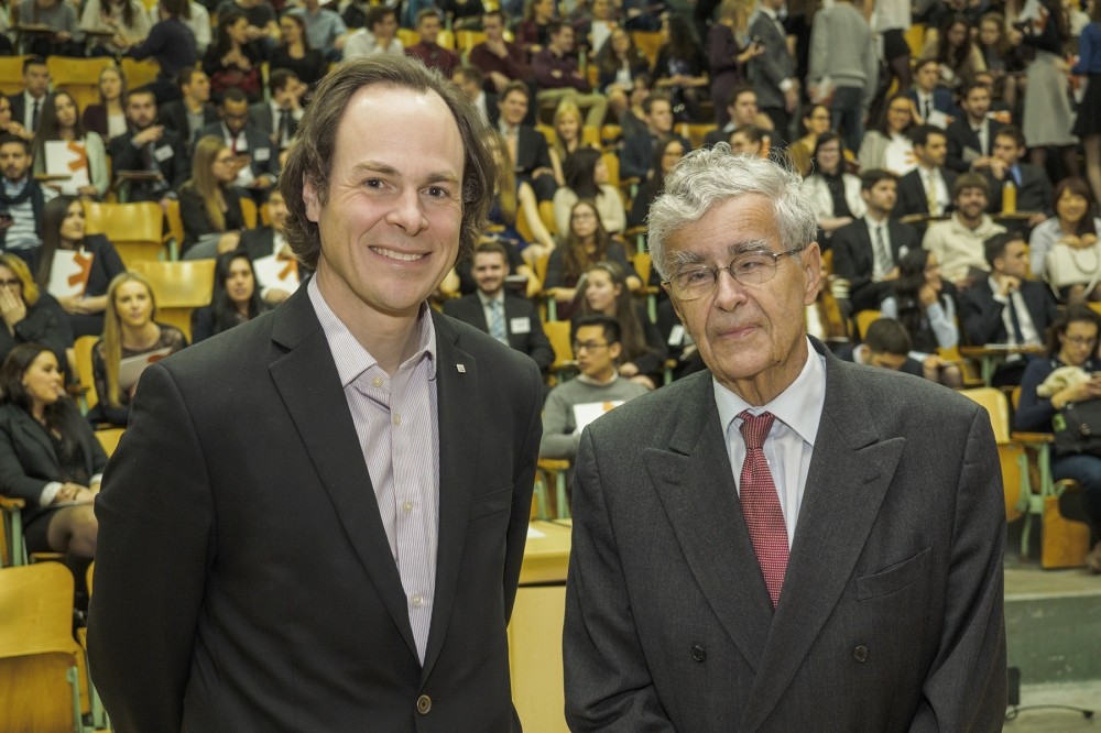 D’entrée de jeu, le doyen Sébastien Lebel-Grenier s’est entretenu avec l’honorable juge Louis LeBel, qui a généreusement répondu à ses questions et à celles des étudiants. En toute simplicité, le juge LeBel a relaté sa vie d’étudiant, sa carrière de juriste et son ascension au sein de la magistrature. Diplômé de l’Université Laval et de l’Université de Toronto, Louis LeBel a d’abord pratiqué comme avocat au sein de trois cabinets, y compris Grondin, LeBel, Poudrier, Isabel, Morin & Gagnon en qualité d’associé. Auteur de divers ouvrages et articles, il a notamment été membre du comité de rédaction de la Revue du Barreau et de la corporation du Centre communautaire juridique de Québec. Il a également été vice-président, puis bâtonnier du Barreau du Québec.