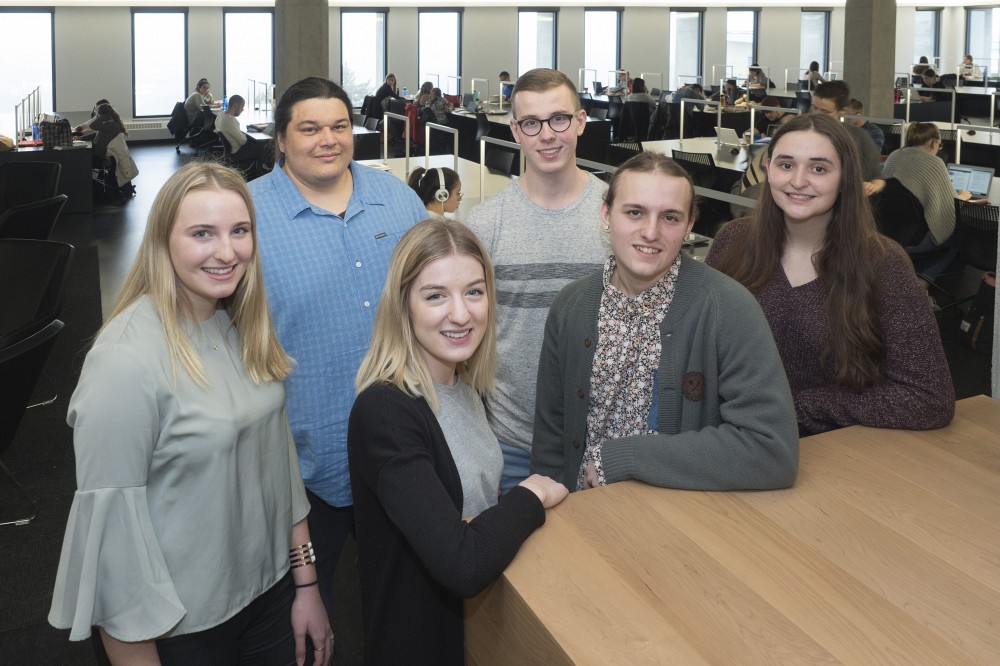 À l’avant : Isabelle Simard, Justine Amyot, Mathieu Desjardins et Alice Drolet. À l’arrière : Alexis Wawanoloath et Karl Boulanger.