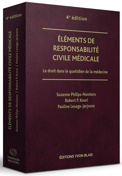Rédigée par Suzanne Philips-Nootens, Robert P. Kouri et Pauline Lesage-Jarjoura, la quatrième édition du volume Éléments de responsabilité civile médicale – Le droit dans le quotidien de la médecine a été publiée aux Éditions Yvon Blais.