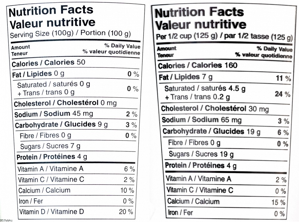 Mais rien sur la manière d’interpréter les nombres fournis... Vous avez donc à décrypter, par vous-même, la signification de valeurs parfois très variables. Et si, par curiosité, vous consultez le texte du Règlement sur les aliments et les drogues, vous trouverez probablement son vocabulaire indigeste. Voilà qui est normal pour un document ne s’adressant pas au grand public.