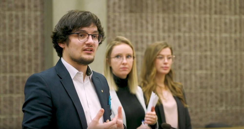 Le 9 avril 2019 : à 14 h 05, le député indépendant Guy Ouellette dépose le projet de loi 197, écrit par le groupe d’interprétation juridique, cours donné par Jonathan Mayer. Pour ces 51 étudiants et étudiantes de la Faculté de droit, c’est l’aboutissement d’une session d’efforts intensifs. Et 18 d’entre eux assistent, sur place, à ce moment chargé de fierté, synonyme d’apprentissages à la fois professionnels et personnels.