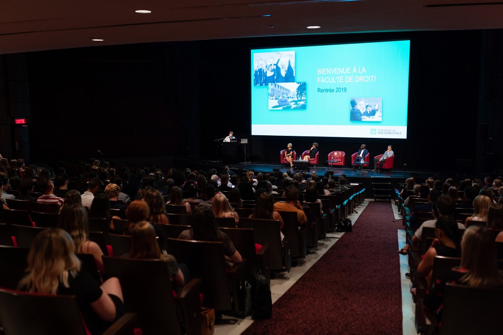 Tous les étudiants de première année, y compris ceux qui n’avaient pas participé au cours Méthodes de travail du juriste en devenir ont été conviés, le mardi 20 août, à la cérémonie d’accueil officielle. Cette activité, tenue à la salle Maurice O’Bready, leur a permis de mettre un visage sur les membres de la direction et du personnel professionnel et enseignant de la Faculté, mais également d’entendre les témoignages de deux personnalités influentes du monde juridique, l’honorable David Lametti, ministre de la Justice et procureur général du Canada, et l’honorable Lucie Rondeau, juge en chef de la Cour du Québec.