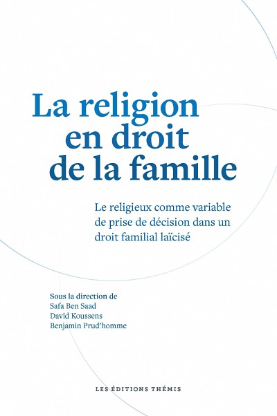 À l’initiative de Safa Ben Saad, du professeur David Koussens et de Me Benjamin Prud’homme, ce nouvel ouvrage rassemble les contributions de chercheurs, praticiens du droit et experts qui s’interrogent sur la pertinence et la légitimité du religieux comme variable de prise de décision en droit de la famille.