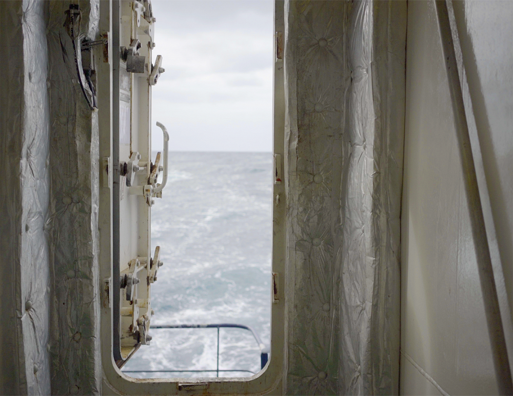 Sea Lanes, Empire, Fly or Die et Navigations mettent en lumière les enjeux sociaux, environnementaux et éthiques que convoquent les trajets des personnes et des marchandises. Le déplacement transatlantique éprouvé par les artistes à bord d’un cargo, représenté dans Sea Lanes, révèle la dynamique d’un déséquilibre entre marchandises convoitées, force de travail et vestiges de rapports coloniaux.