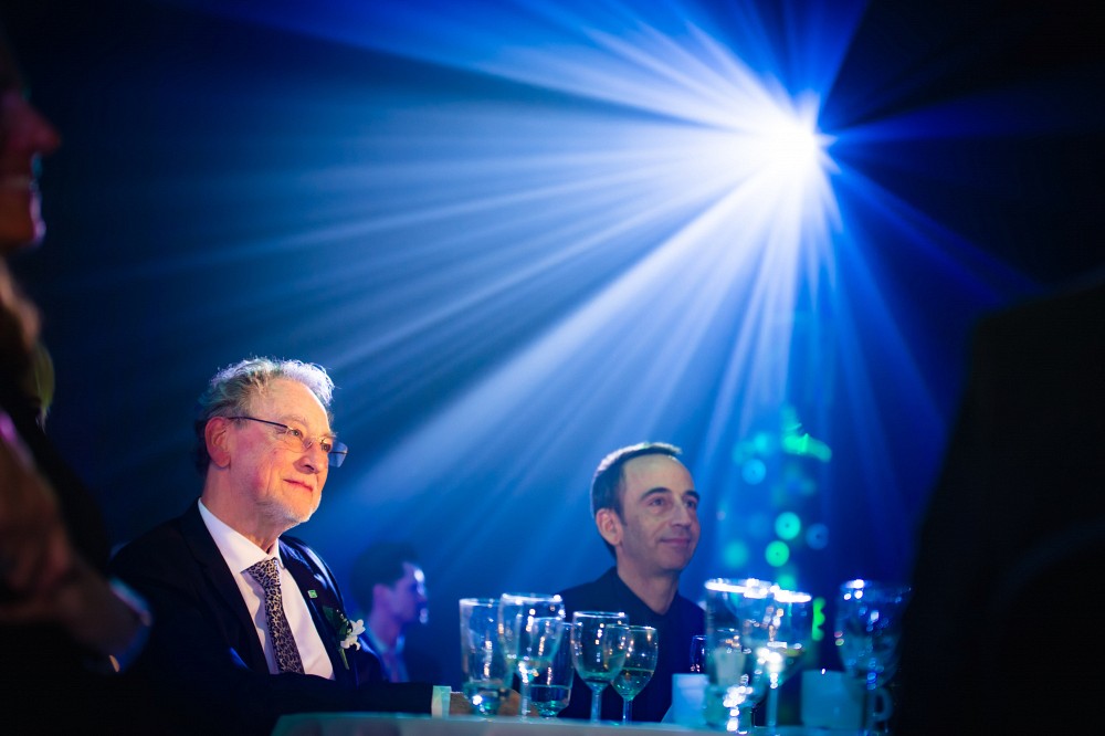 « C’est avec bonheur mais aussi avec grande humilité que je reçois ce soir les distinctions d’ambassadeur de la Faculté de droit et de grand ambassadeur de l’Université de Sherbrooke, honneur que j’accepte avec une profonde reconnaissance et que je partage avec celles et ceux qui m’ont accompagné sur le chemin de la vie », a témoigné Robert F. Hall devant les nombreuses personnes invitées.