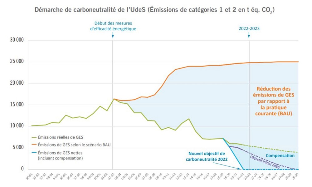 Ces dernières années, l’Université s’est dotée d’une stratégie de carboneutralité 2030 et elle a mis en place toute une série de mesures pour réduire ses émissions de GES au maximum.