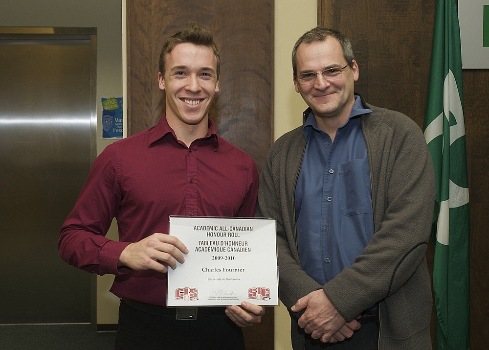 Lors d'une brève cérémonie tenue récemment au rectorat, ces athlètes de la Faculté d'administration qui représentent le Vert & Or sur les scènes sportives provinciale et nationale, ont reçu un certificat d'honneur académique des mains du professeur Alain Webster, vice-recteur au développement durable et relations gouvernementales.