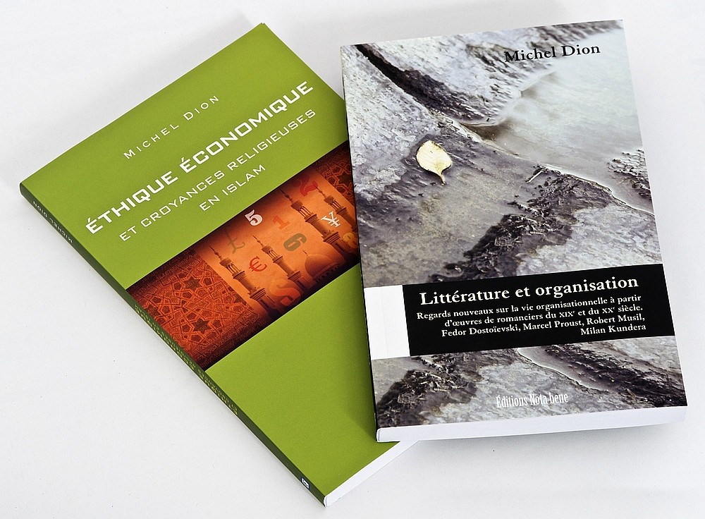Michel Dion, professeur à la Faculté d'administration de l'Université de Sherbrooke, vient de publier deux ouvrages sur l'éthique et les organisations : Éthique économique et croyances religieuses en islam et Littérature et organisation – Regards nouveaux sur la vie organisationnelle à partir d'œuvres de romanciers du 19e et du 20e siècle.