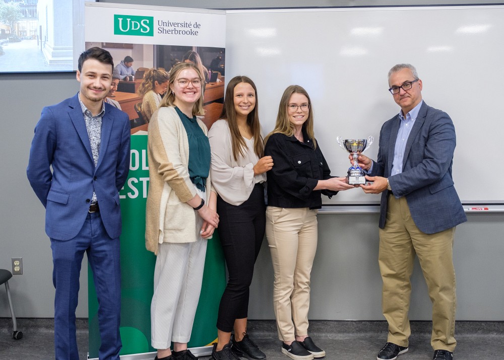 Rappelons que cette compétition, qui se déroule habituellement à Ottawa, avait eu lieu cette année en mode virtuel en raison de la pandémie. Néanmoins, l’équipe composée de Maude Ouellet, Mary-Lee Courtois, Alexandra Lareau et François-Olivier Parent a obtenu les grands honneurs devant pas moins de 21 autres universités canadiennes. Un honneur qui rejaillit sur l’École de gestion mais également sur l’UdeS. Et l’équipe n’était pas peu fière d’offrir un certain rayonnement à un programme qui visiblement lui tient à cœur.