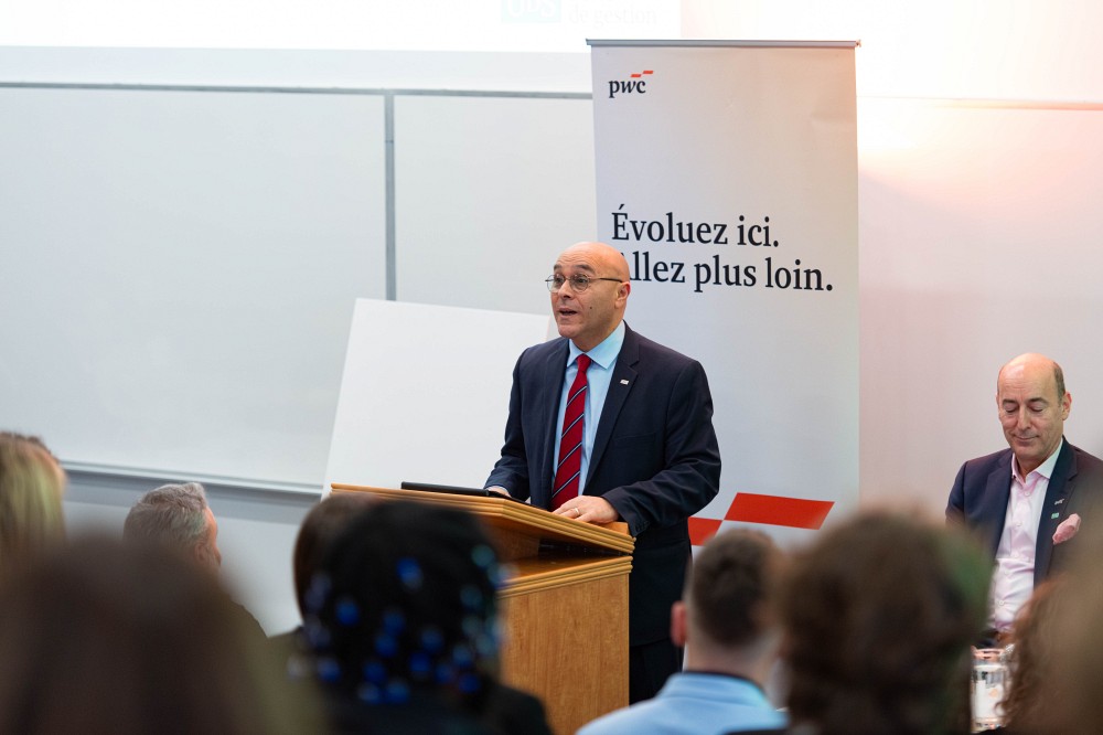 Devant une audience captivée, Nicolas Marcoux a notamment relaté les grandes lignes de son parcours et de son rôle à la tête de PwC Canada, a abordé l’importance de se diversifier professionnellement pour relever les défis de l’avenir et a présenté les effets du contexte géopolitique et des nouvelles technologies sur les entreprises, tout en s’appuyant sur les faits saillants tirés de l’Enquête annuelle mondiale auprès des chefs de direction de PwC.