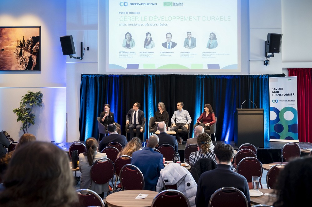 Le doyen a également souligné que la création de l’Observatoire BMO en gestion du développement durable en 2024 et le lancement de son premier livre blanc un peu plus d’un an plus tard sont des initiatives qui s’inscrivent dans un long parcours d’engagement et de recherche consacré à la gestion du développement durable à l’École de gestion de l’Université de Sherbrooke.