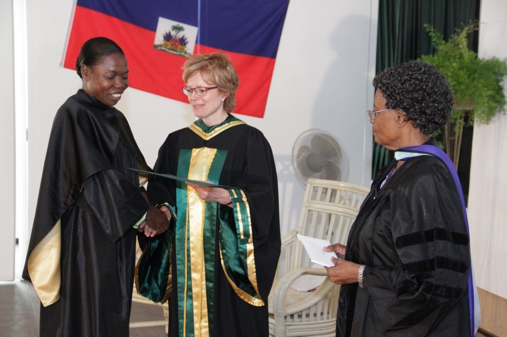 La doyenne de la Faculté d’éducation de l’UdeS, Colette Deaudelin, a particulièrement mis en évidence l’effort que tous les partenaires ont consenti pour que ces étudiantes et étudiants parviennent à compléter leur programme d’études : « Sans la ténacité de sœur Zita Ruben-Charles qui a amorcé ce projet dès 1994, sans la foi et le soutien de la communauté des sœurs de la Congrégation de Sainte-Croix (notamment sa supérieure, Sœur Kesta Occident), sans l’engagement indéfectible de la coordonnatrice du programme pour cette cohorte haïtienne, la professeure Hélène Hensler, sans la mise sur pied d’un fonds d’aide financière par la Faculté d’éducation de l’Université de Sherbrooke, nous ne serions pas ici aujourd’hui pour célébrer votre réussite. C’est l’effort conjugué de l’ensemble des partenaires qui porte fruit. »