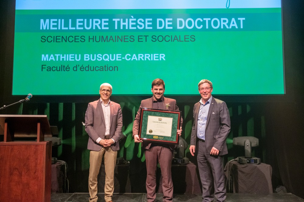Lors de l’ACFAS qui se tiendra à Montréal en mai 2023, Mathieu Busque-Carrier recevra le Prix de la meilleure thèse de doctorat de l’Association des doyens, doyennes et directeurs, directrices pour l’étude et la recherche en éducation au Québec (ADEREQ). Ce prix est accordé pour sa contribution originale, sa rigueur, sa pertinence scientifique, ainsi que ses retombées concrètes sur la pratique et la formation en orientation. Cette thèse a obtenu une mention d’excellence facultaire et décroché également le prix de meilleure thèse de l’UdeS dans la catégorie des sciences humaines et sociales.