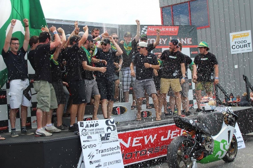 La série eMotoRacing est une compétition de moto électrique sur piste aux États-Unis. Elle se déroule parallèlement aux événements de l’American Historic Racing Motorcycle Association (AHRMA) depuis 2014. Une bourse de 1000 $ est décernée à l’équipe étudiante la plus rapide lors du Varsity Challenge, une compétition annuelle. Cette année, les délégations provenaient de la Cornell University, du Michigan State University, du Rochester Institute of Technology et de l’Université de Sherbrooke, mais seuls le RIT et l’UdeS ont présenté des prototypes fonctionnels.