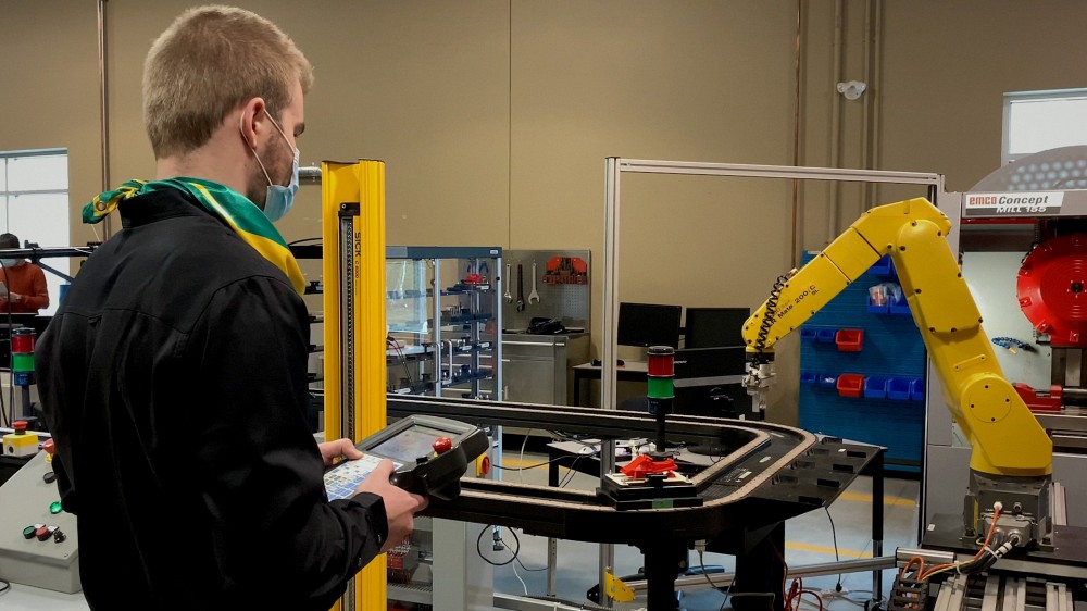 « Dans le cadre du baccalauréat en génie robotique, les étudiants viennent ici, chez Productique Québec, pour mettre en application ce qu’ils ont développé comme compétences dans les autres cours de leur formation à l’Université de Sherbrooke », explique David Brodeur, chargé de projet chez Productique Québec.