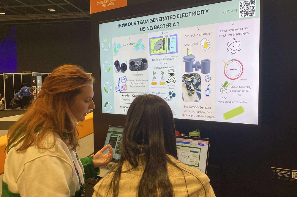 Sur trois jours, l’équipe a présenté son projet, une vidéo structurée et un ensemble d’activités dans plusieurs catégories : éducation (leur catégorie principale), entrepreneuriat et modélisation des données en programmant une courbe simulant la modification génétique envisagée. Ils sont également montés sur scène pour souligner l’importance des ateliers pédagogiques afin d’introduire les jeunes au domaine du génie et de la science en général.